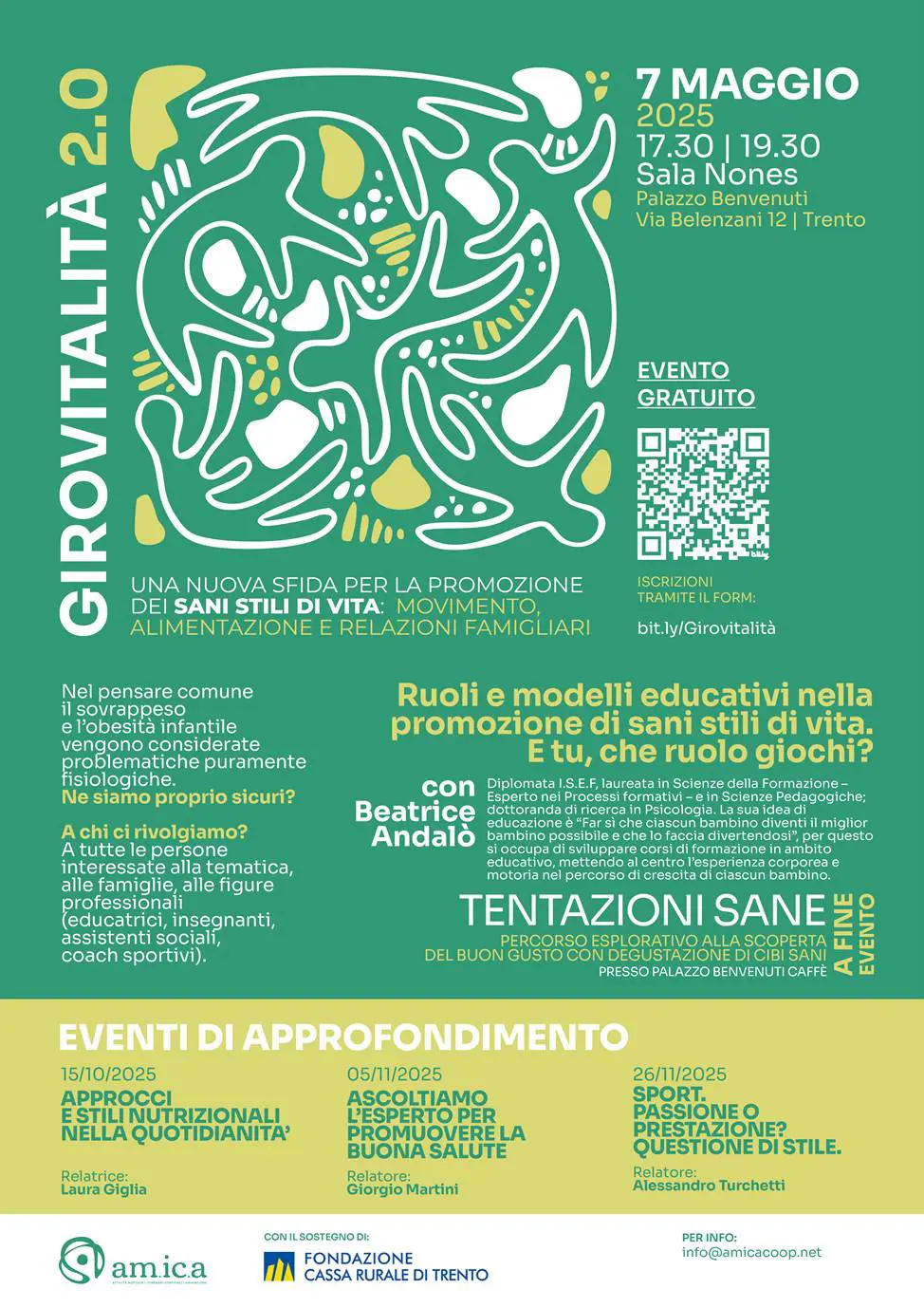 L’evento è gratuito ed è aperto a tutte le persone interessate alla tematica. In particolar modo alle famiglie, insegnanti, educatrici e educatori, assistenti sociali, coach sportivi, cittadini.